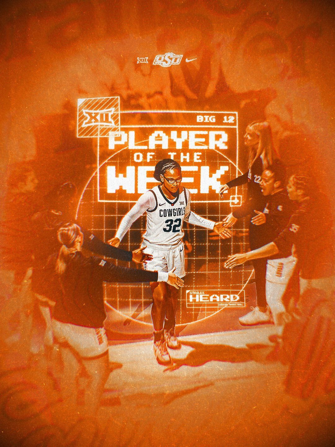 🔼 Anotha One. OSU women’s basketball’s Stailee Heard has been named the Big 12 Player of the Week. This honor joins her National Player of the Week honor that came earlier in the week. She recorded her third-straight 20-point outing against Kansas before recording a triple-double against No. 19 Iowa State. She became the first Big 12 player this century to record at least 15 points, 15 rebounds, and 10 assists in a game. She is also just the second DI player since at least 1999-2000 to put up those numbers against a ranked opponent.