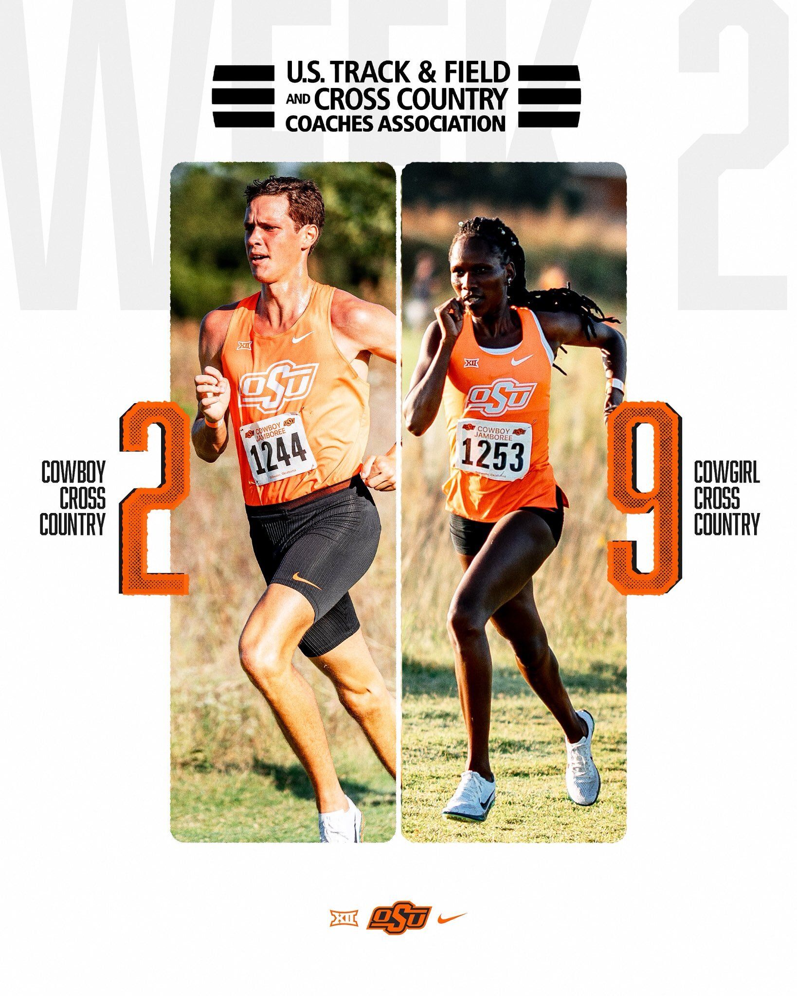 🔼 Continue The Climb. Both the Cowboys and Cowgirls are in the top 10 of the USTFCCCA rankings! The men’s cross country team came in at No. 2 this week, while the women are at No. 9. The Cowboy Jamboree proved to be a success for both teams as they leaped in the rankings.