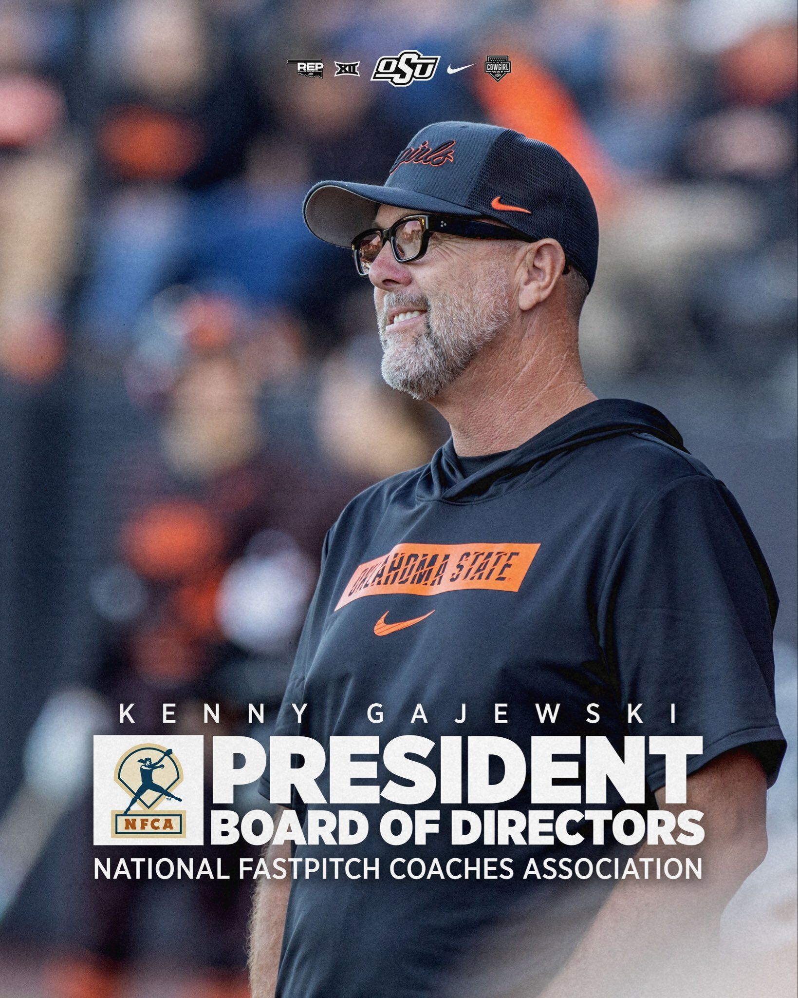 🔼 Mr. President. Oklahoma State softball head coach Kenny Gajewski was elected as the new National Fastpitch Coaches Association President. Gajewski, who will begin his three-year term on January 1, 2026, will guide the organization’s strategic vision and serve as a national voice for collegiate softball coaches.