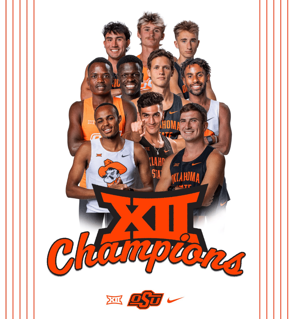 🔼 Reclaimed The Throne. The Oklahoma State Cowboy cross country team won the Big 12 Cross Country Championship, marking their fifth title in six years! Brian Musau won the individual title for the third consecutive year, leading the Cowboys to a dominant team victory with a total of 20 points. Musau became just the second man in Big 12 history to win the individual title in three-straight seasons. The Cowgirls finished fourth in the team standings, led by Isca Chelangat’s fourth-place finish.