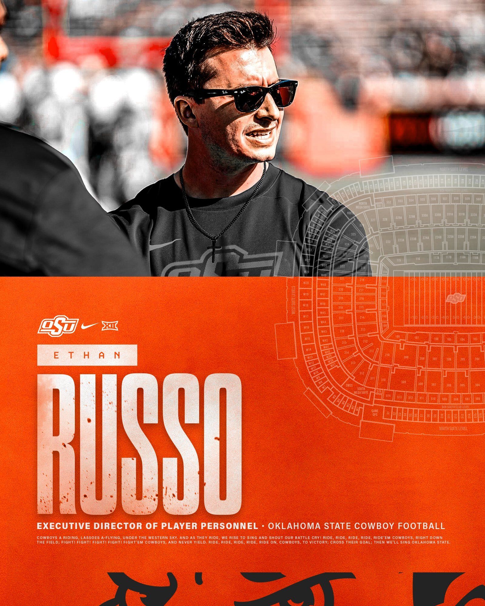 🔼 Player’s Guy. Oklahoma State football’s new Executive Director of Player Personnel is Ethan Russo. He has worked in football for more than a decade and has held a player personnel role since 2019.
