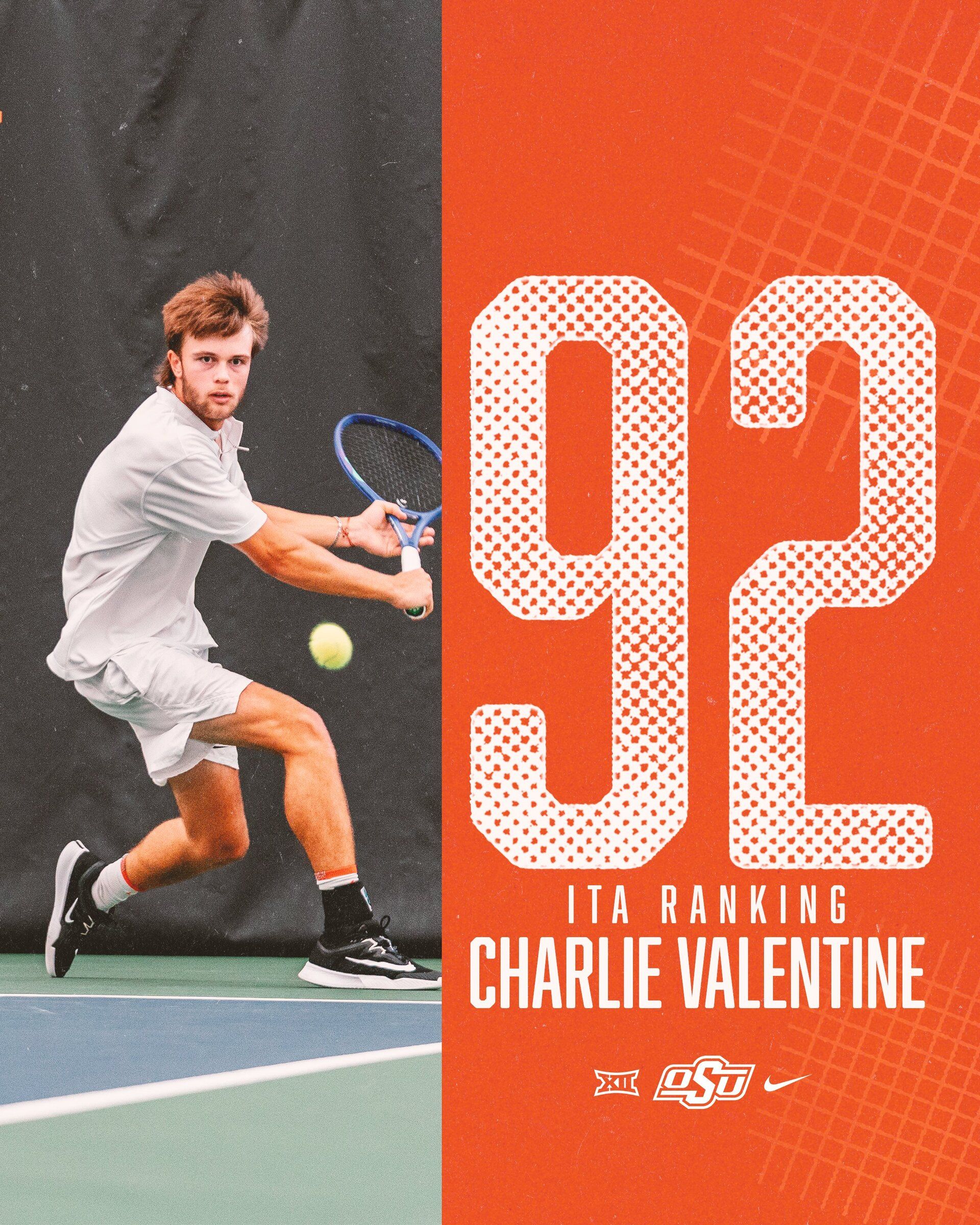 🔼 Movin’ On Up. Oklahoma State men’s tennis freshman Charlie Valentine was ranked No. 92 in the final ITA rankings of 2025. He had a successful fall season, including a runner-up finish at the UTR PTT Stillwater.