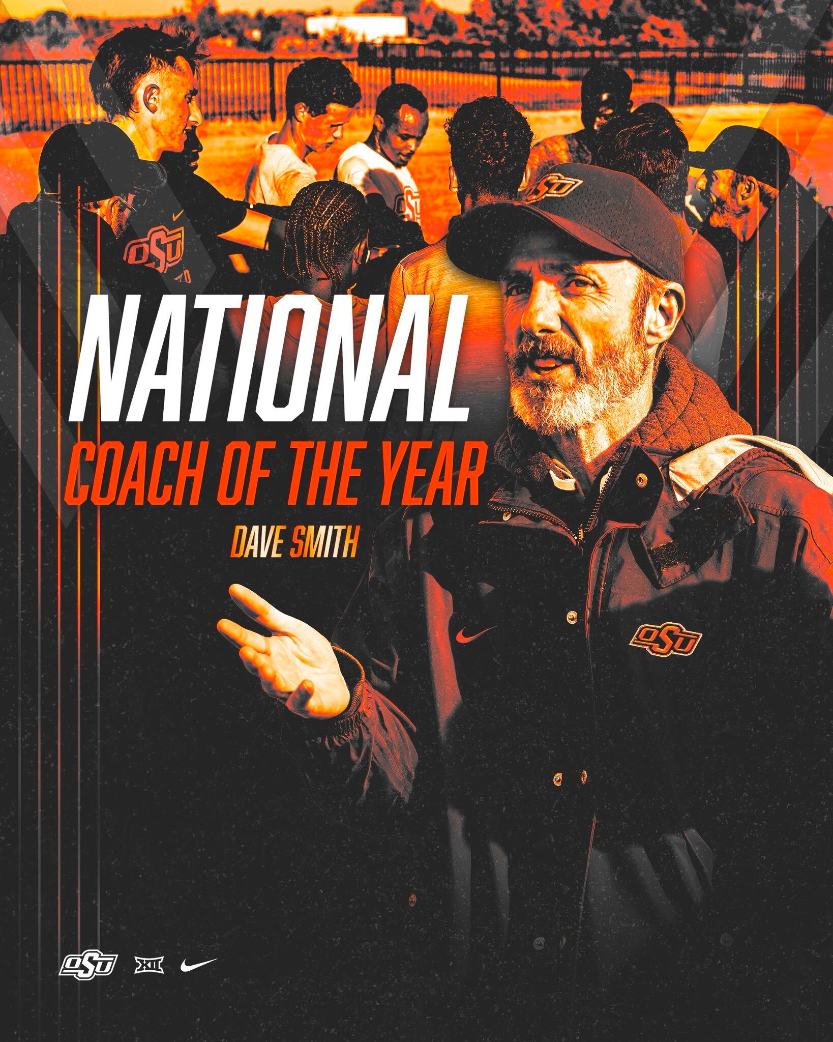 🔼 Man Of The Year. Oklahoma State Director of Track & Field and Cross Country Dave Smith was named USTFCCCA National Coach of the Year after leading the Cowboys to their sixth NCAA title. The Cowboys completed a perfect season, winning every meet, and claimed their 14th Big 12 championship under Smith.