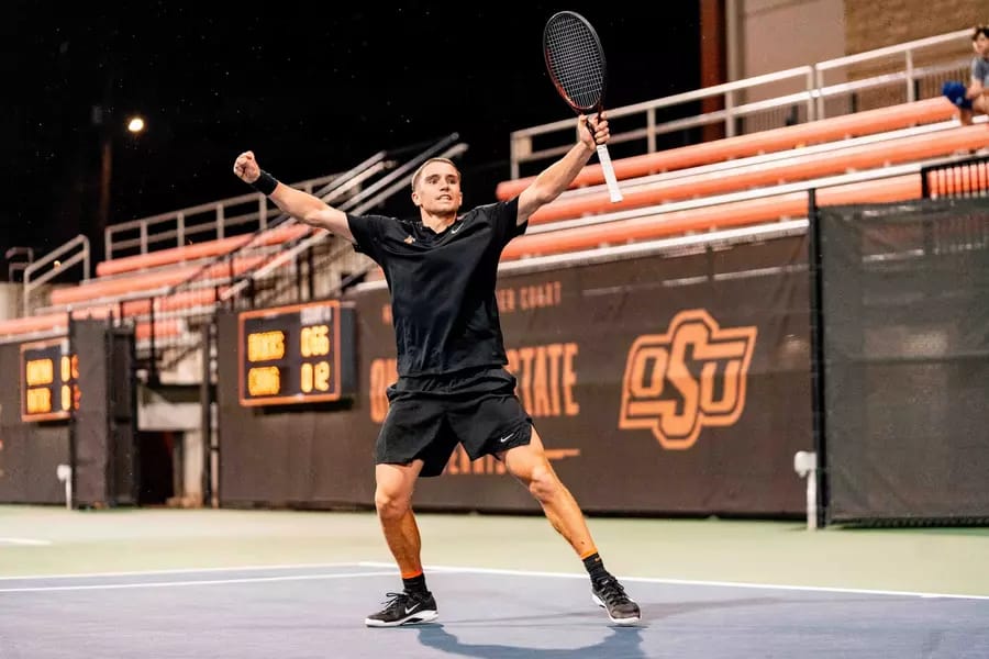 🔼 Historic Win. The men’s tennis team defeated Penn 4-3, improving to 13-4 on the season. With an 11-0 home record, it is OSU’s best start since the GTC was built. The Cowboys secured the doubles point and won singles matches by Ian Bracks, Haydar Gokpinar, and Nicolas Kobelt, who clinched the match with a third-set tiebreaker victory. OSU will begin conference play against Utah and BYU.