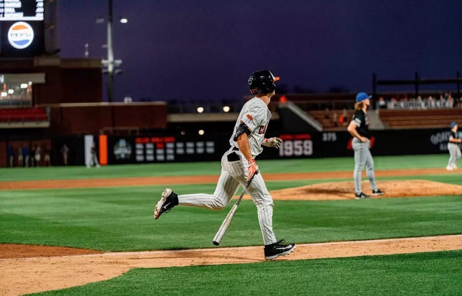 🔼 Midweek Sweep. Oklahoma State baseball defeated South Dakota State 12-11 in a thriller to sweep the midweek series. Campbell Smithwick hit a walk-off home run in the ninth inning, his second walk-off of the season. The Cowboys rallied from a 5-0 deficit, scoring 10 runs in the fifth inning. The Pokes will host Baylor this weekend.